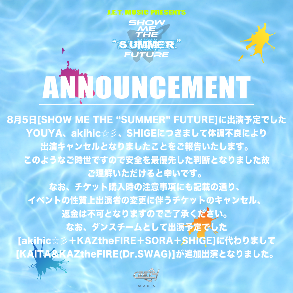 [SHOW ME THE “SUMMER” FUTURE]出演キャンセルのお知らせ